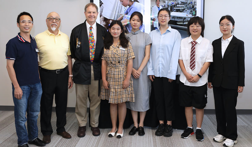 As their visit came to a conclusion last week, the SAU delegation was recognized at a farewell reception held Friday (July 28) in the Joy M. Matson Multi-purpose Room at the David and Bonnie Brunner Small Animal Hospital. “The relationship between Sichuan Agricultural University and the Purdue University College of Veterinary Medicine has remained strong for many years now,” said Addison Sheldon, PVM’s director of global engagement. “Of course, COVID-19 halted our exchanges for a few years, but not even a pandemic can stop our friendship, and it’s wonderful to have you back in West Lafayette,” Addison said to the group of five SAU veterinary students and the faculty member who accompanied them, professor and surgeon Dr. Zhijun Zhong. “We truly look forward to your visits each year and always admire your enthusiasm to learn and gain a new perspective of veterinary medicine,” Addison said.