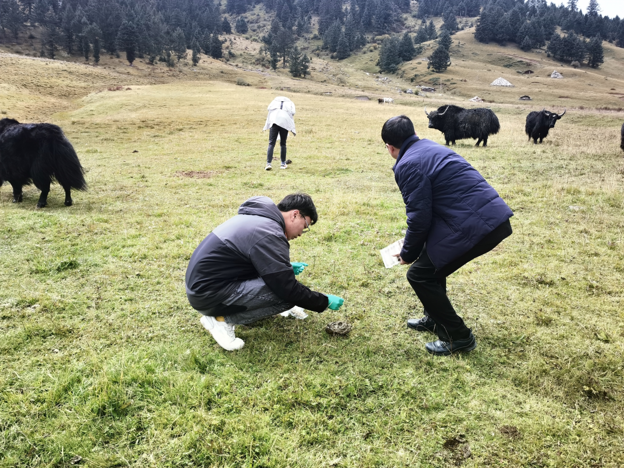 牦牛呼吸道和消化道疾病一直是困扰养殖户的一个大问题。此次专家一行在道孚县龙灯乡、鲜水镇、色卡乡、八美镇,康定市塔公镇,新龙县通宵镇察亚所村2组和4组和炉霍县洛秋乡等乡镇采集了牦牛呼吸道拭子和粪便样品100余份,开展呼吸道、消化道常见细菌病原、寄生虫等检测,调查当地牦牛的常见疾病流行情况,为牦牛疾病的综合防治技术提供科学依据,护航产业健康发展。