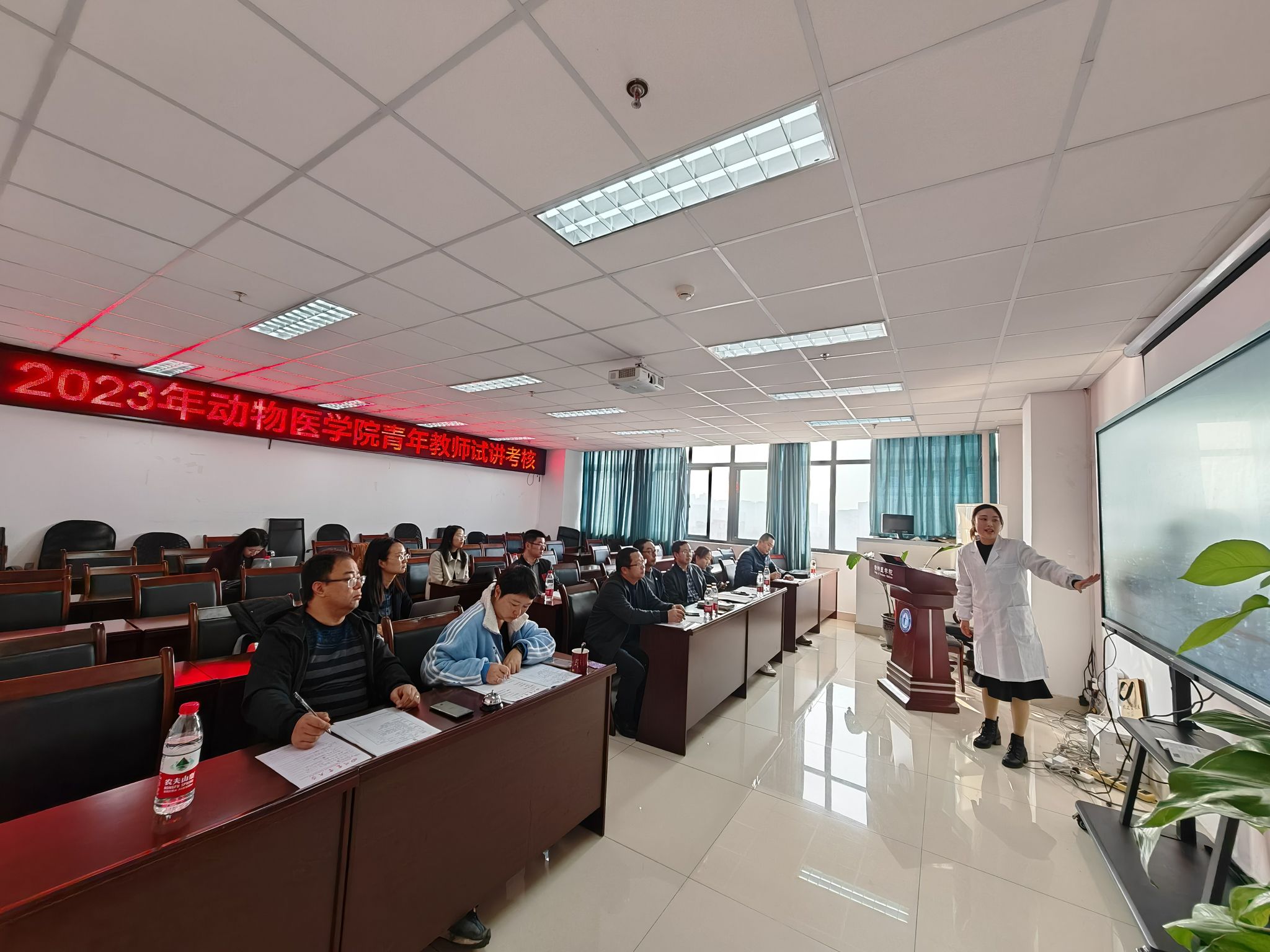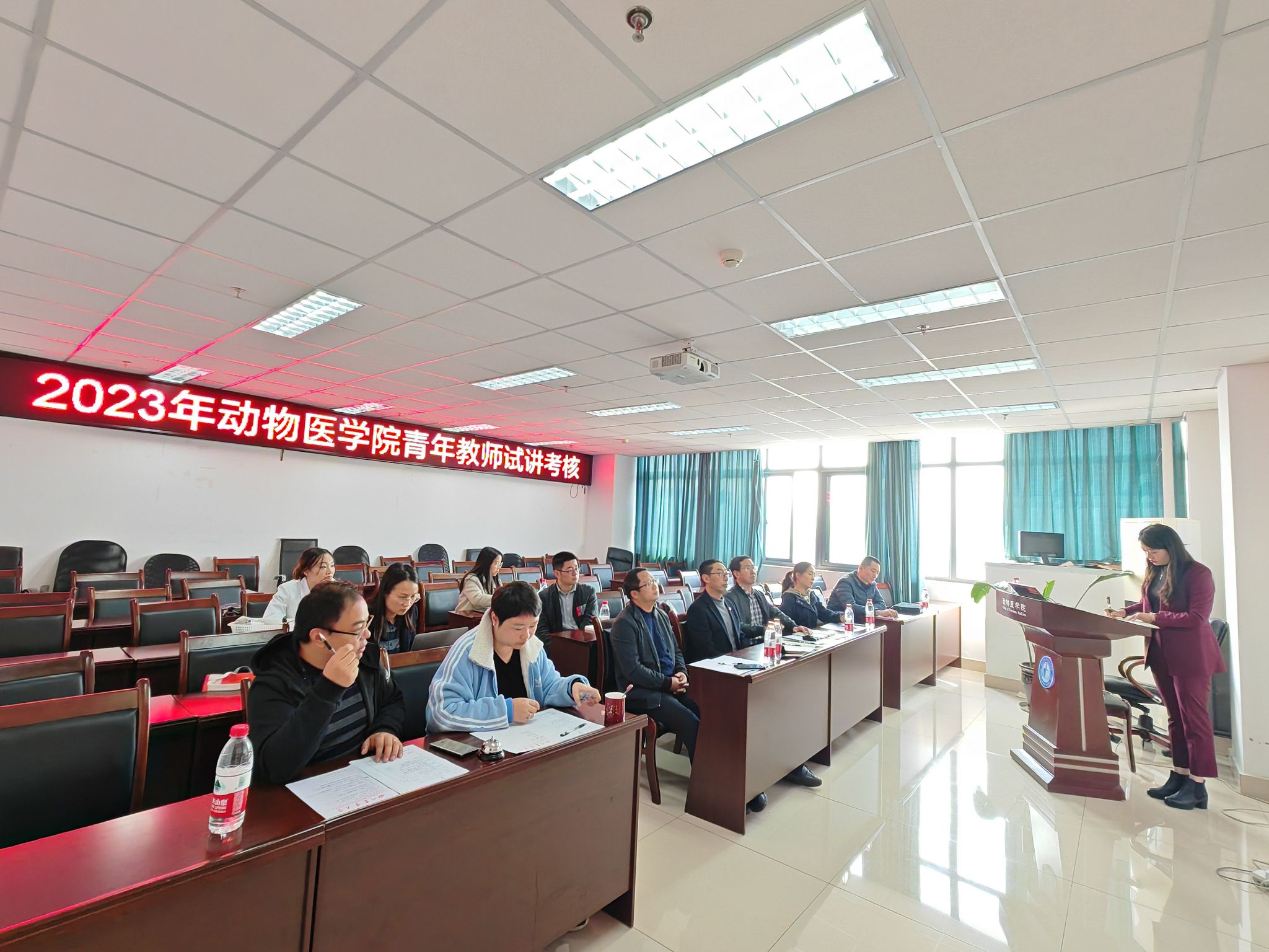 本次试讲考核由分管教学副院长左之才教授主持,学院党委书记贾仁勇教授,教代会主席兼院督导组组长和专业负责人陈正礼教授,以及骨干教师等共7人担任考评嘉宾。本次试讲教师覆盖了学院各系室,共有5名青年教师参与。