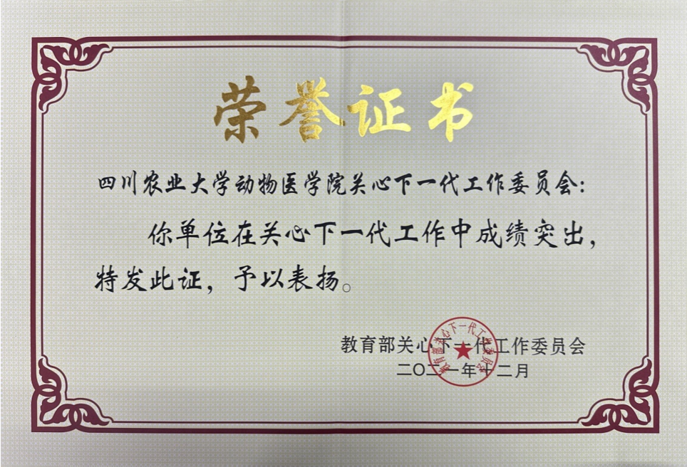 近日,教育部关心下一代工作委员会公布了一份在关心下一代工作中成绩突出的单位名单,德赢VWIN官方网站关工委以其卓越的表现和持续的贡献,予以表扬,特发证书。