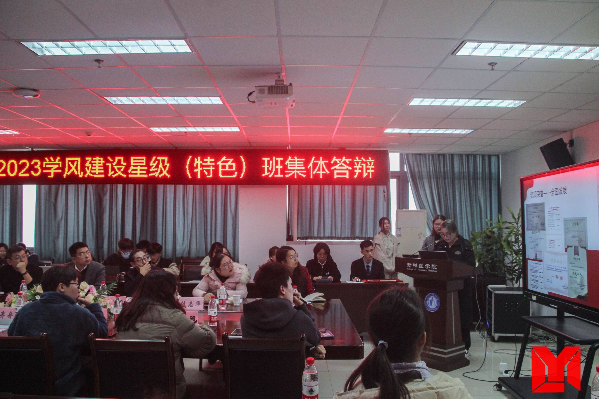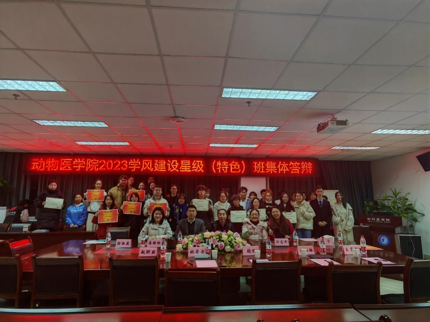 评委依据各班建设情况与各班答辩表现情况进行打分,并现场公布获奖情况。最终动检202001荣获学风建设五星级班集体,动医202106、药学202202荣获学风建设四星级班集体,药剂202202、药学202201、药剂202101荣获学风建设三星级班集体,动医202203荣获党团示范班、药学202102荣获优良学风班、药学202203荣获实践奉献班、动医202205荣获文体突出班、动医202101荣获网络文明班、动医202204荣获团结奋进班。