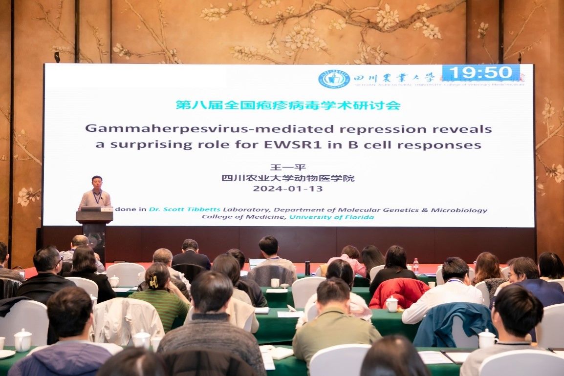 德赢VWIN官方网站青年教师王一平博士受邀参会,并以《Gammaherpesvirus-mediated repression reveals a surprising role for EWSR1 in B cell responses》(γ疱疹病毒介导的抑制揭示EWSR1在B细胞反应中具有重要作用)为题作大会报告。报告中,王一平博士分享了他在动物疱疹病毒感染与免疫研究领域取得的科研成果。