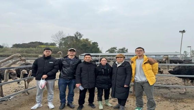 杜晓惠教授、舒刚副教授在郑光华学员的鸵鸟养殖场