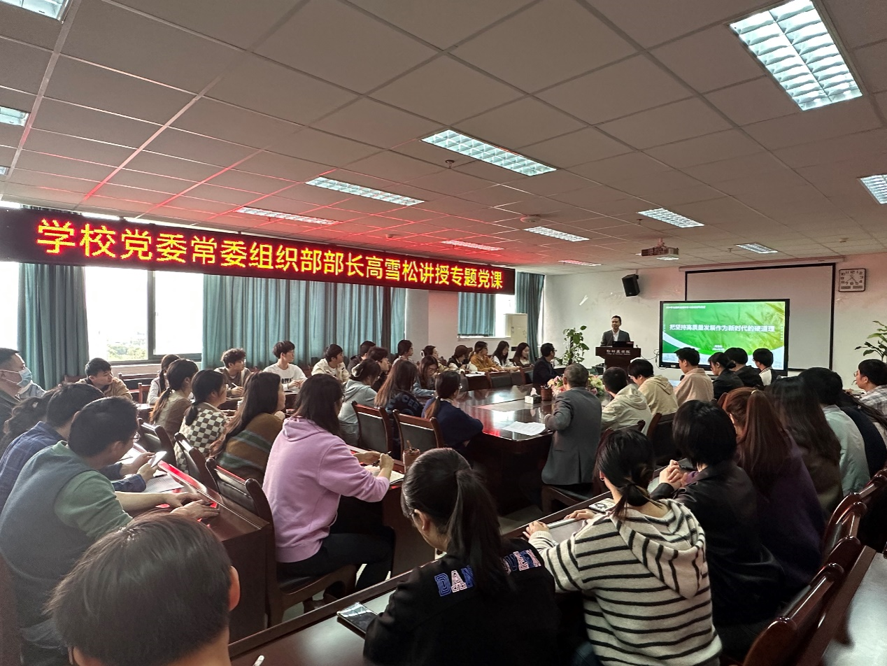 在授课中,高雪松教授详细解读了“发展新质生产力”的概念及其对于推动高质量发展的重要意义。他提出,新质生产力代表了先进生产力的演进方向,是引领创造强大发展动能的核心要素。针对如何发展新质生产力,他讲解了四个发力方向,包括推进科技创新和科技成果转化、建设现代化产业体系、推进乡村振兴以及筑牢生态屏障等,为学院的发展提供了明确的方向和目标。此外,高雪松教授还就“两高地、两基地、一屏障”的战略布局进行了深入阐述,强调这些战略布局的实施对于推动西部地区乃至全国的发展具有重要意义。