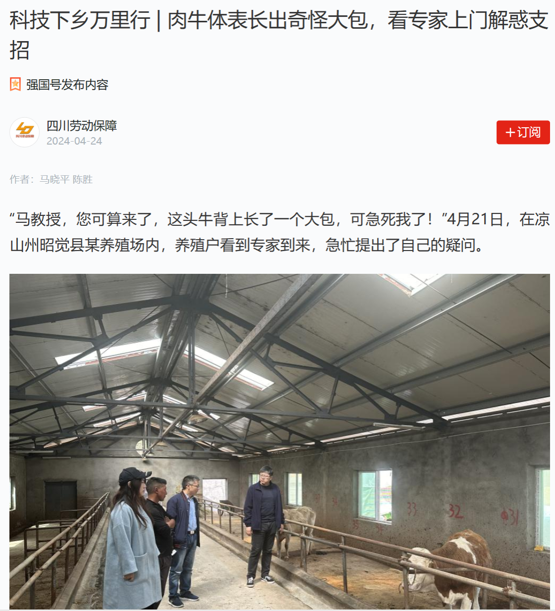 “马教授,您可算来了,这头牛背上长了一个大包,可急死我了!”4月21日,在凉山州昭觉县某养殖场内,养殖户看到专家到来,急忙提出了自己的疑问。
