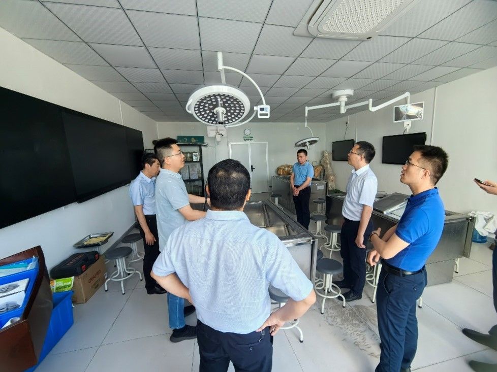 黄昌建教授一行首先参观了我校德赢VWIN官方网站的第八教学楼(教学动物医院)。在参观过程中,双方就中兽医针灸技术进行了深入的交流,共同探讨了中兽医在未来的发展方向和应用前景。
