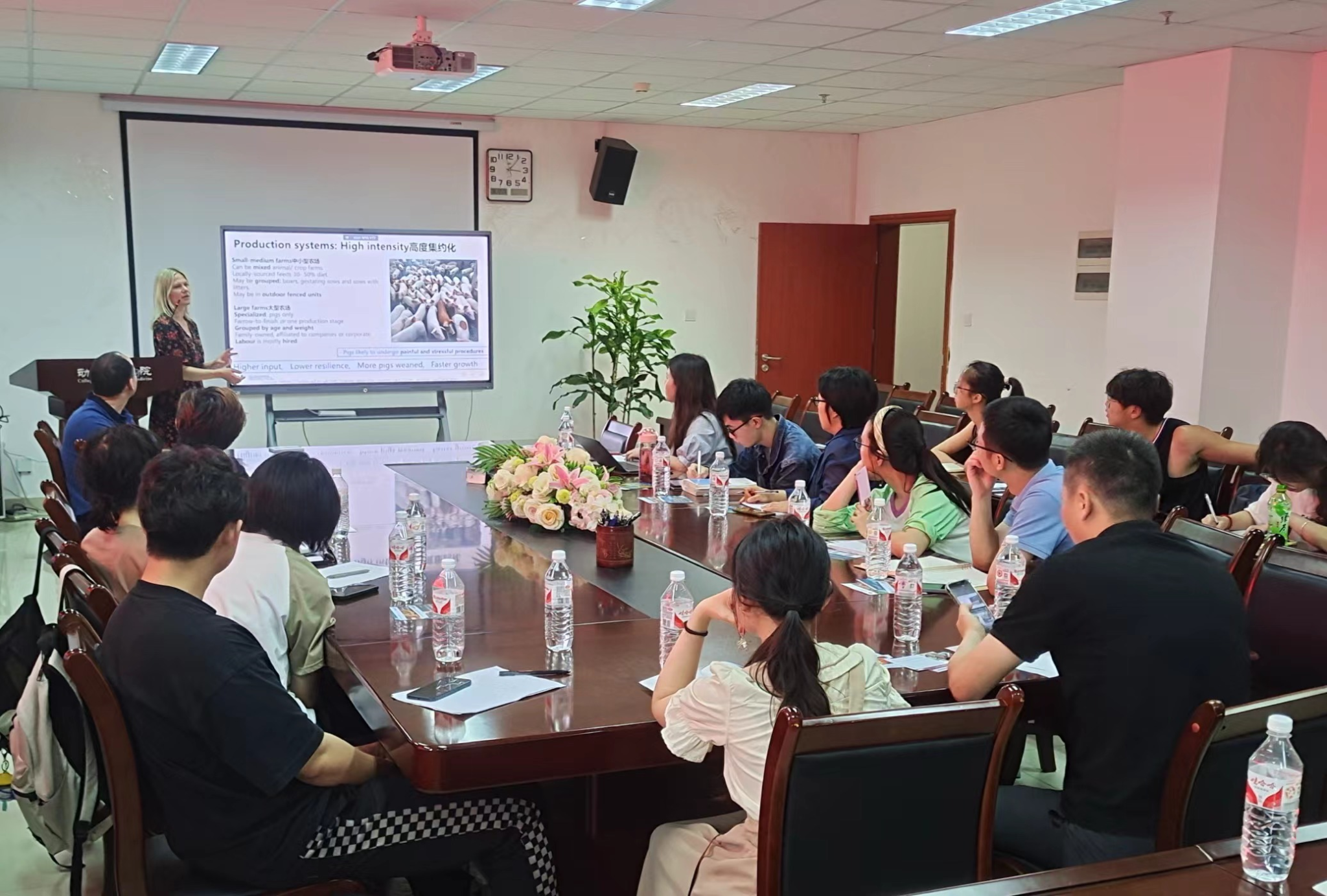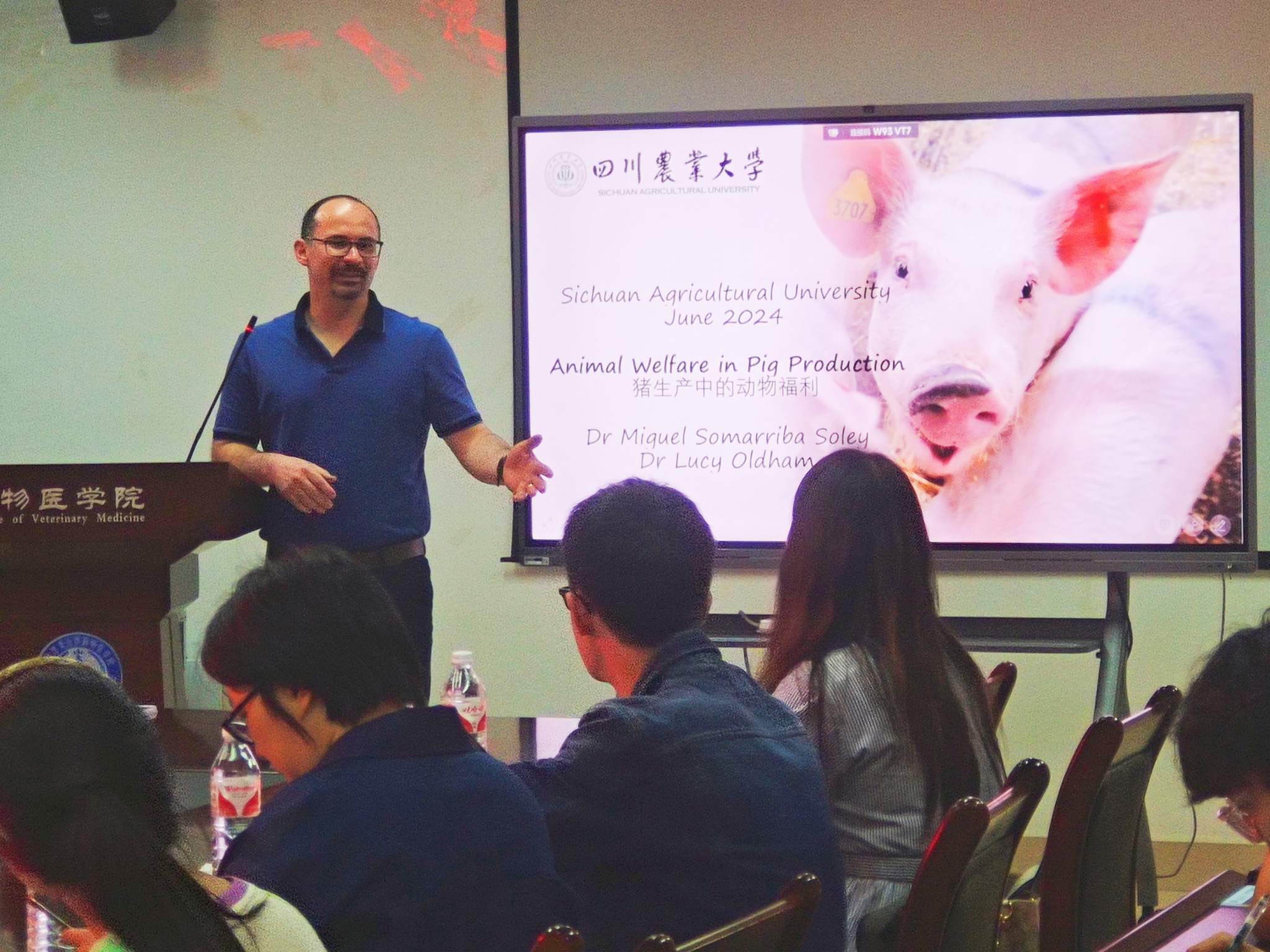 6月12日下午,英国苏格兰农业学院的青年研究员Soley博士和Oldham博士做客“医家-外籍专家学术讲坛”,以独到的视角和渊博的学识,为德赢VWIN官方网站师生们带来了一场围绕生猪养殖中动物福利问题的精彩讲座,此次会议由临床兽医系青年教师黄逸馨主持。此次活动不仅提升了与会者对动物福利的认知水平,更激发了大家对动物福利与养殖业经济效益关系的深入思考。
