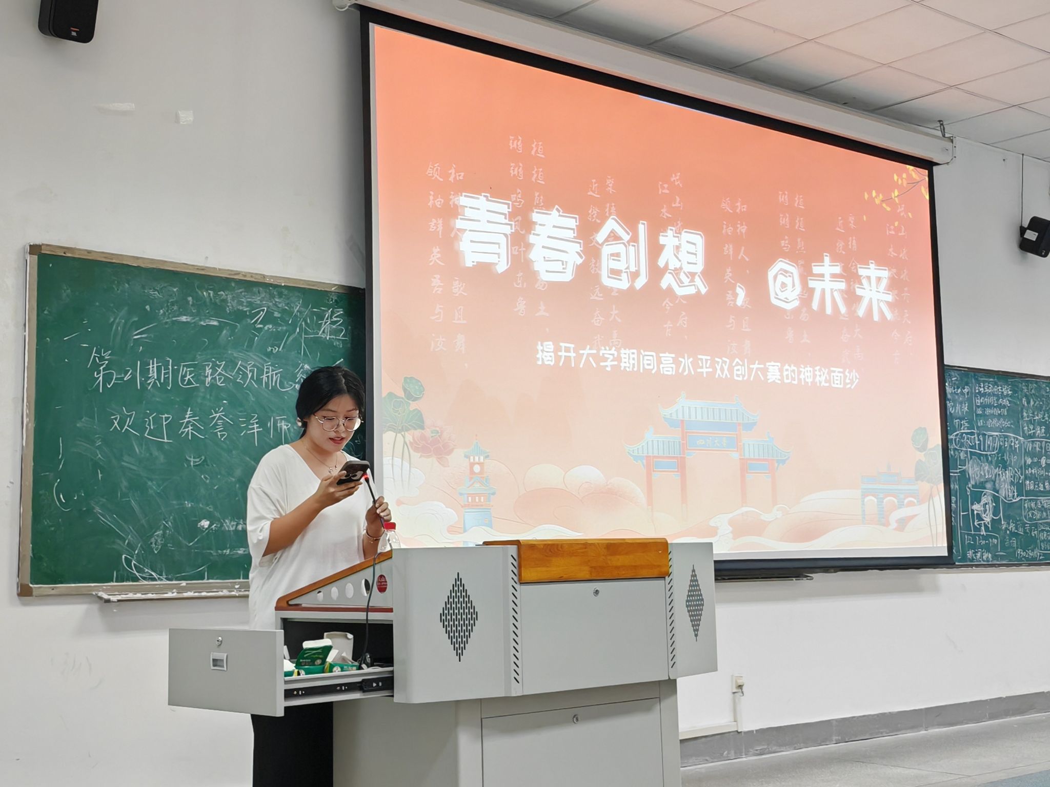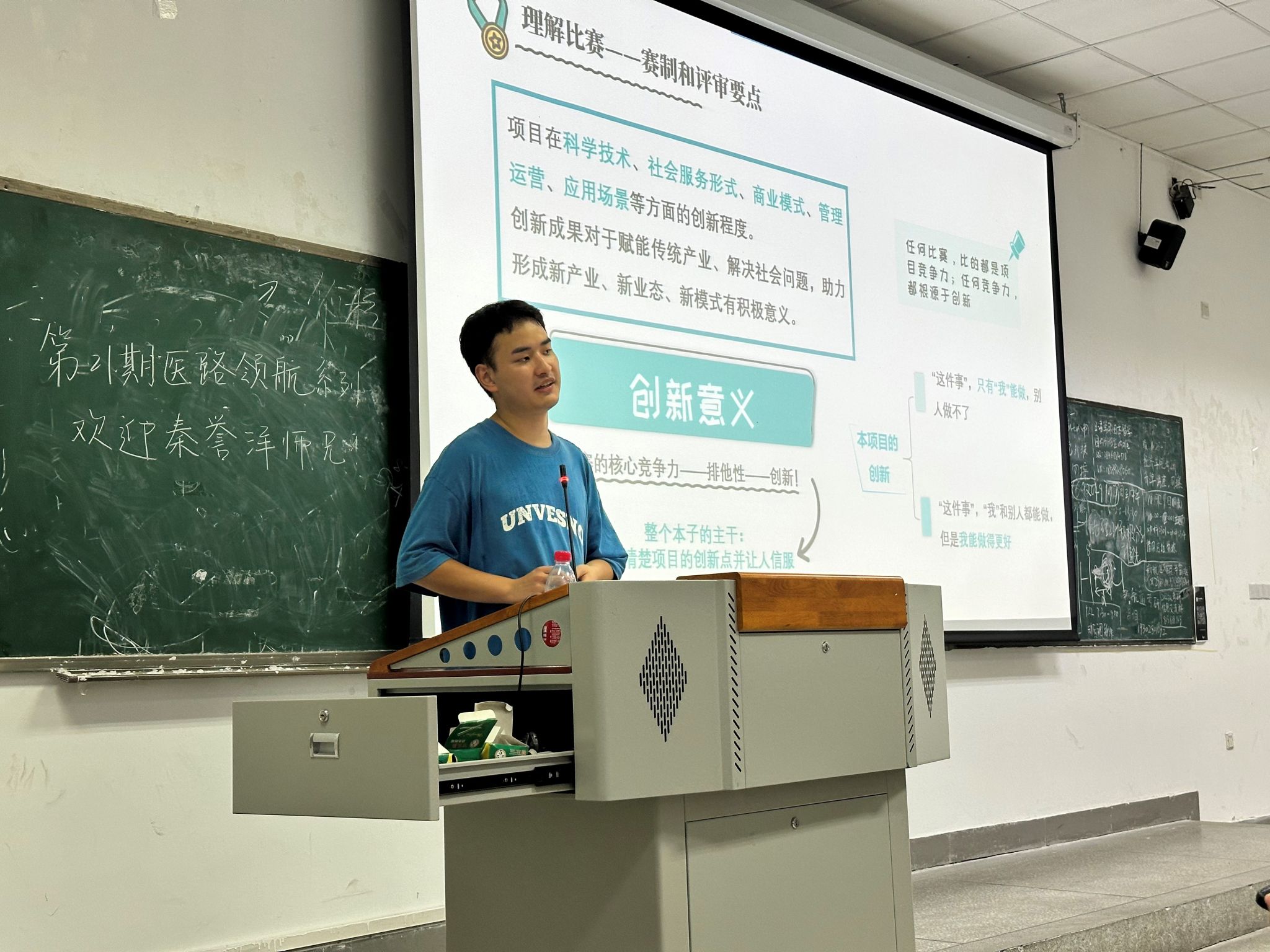 9月25日,“宇你同行”辅导员工作室第21期医路领航系列活动在德赢VWIN官方网站顺利举行。本次医路领航系列活动有幸邀请到德赢VWIN官方网站创新创业朋辈导师秦誉洋,为德赢VWIN官方网站150余名新生带来一场关于创新创业比赛的精彩分享。