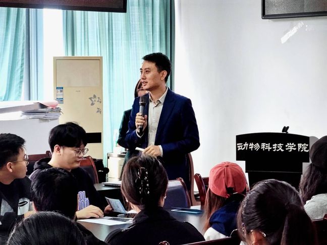 随后,刘泓晖详细介绍了本次招聘的岗位需求和任职要求。本次招聘涵盖了管培生、研究员、养殖技术员、兽医等多个专业岗位,为同学们提供了丰富的选择。同时,公司还为新入职的员工提供完善的培训体系和职业发展规划,帮助他们快速成长为行业内的专业人才。