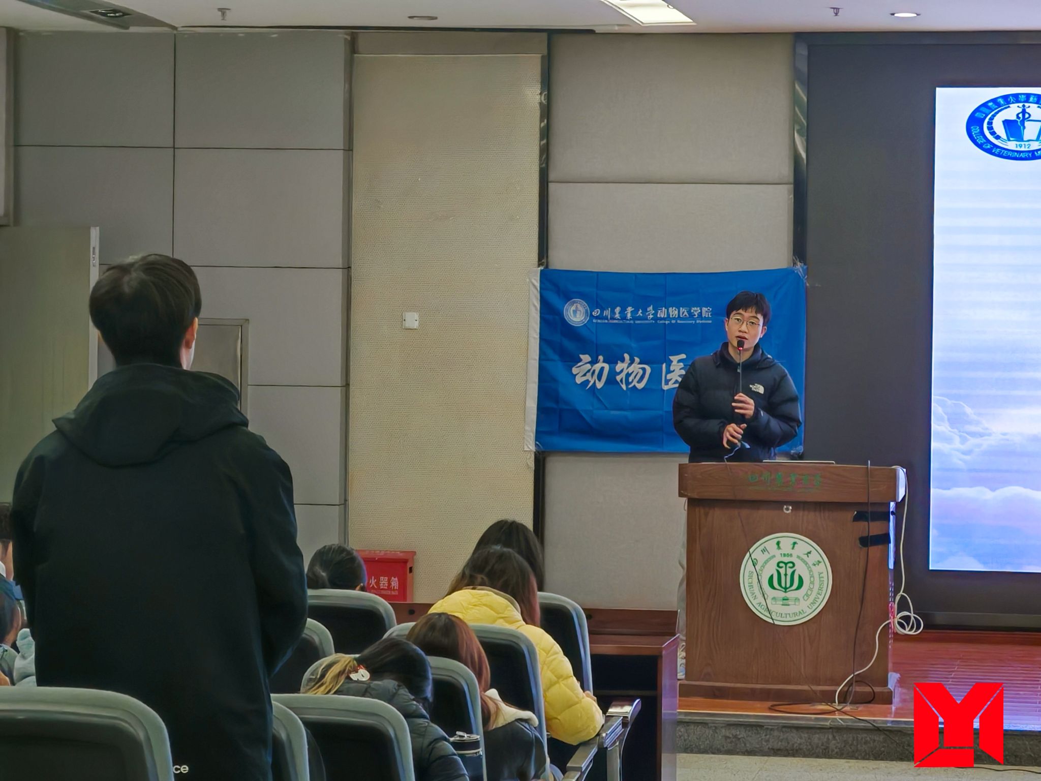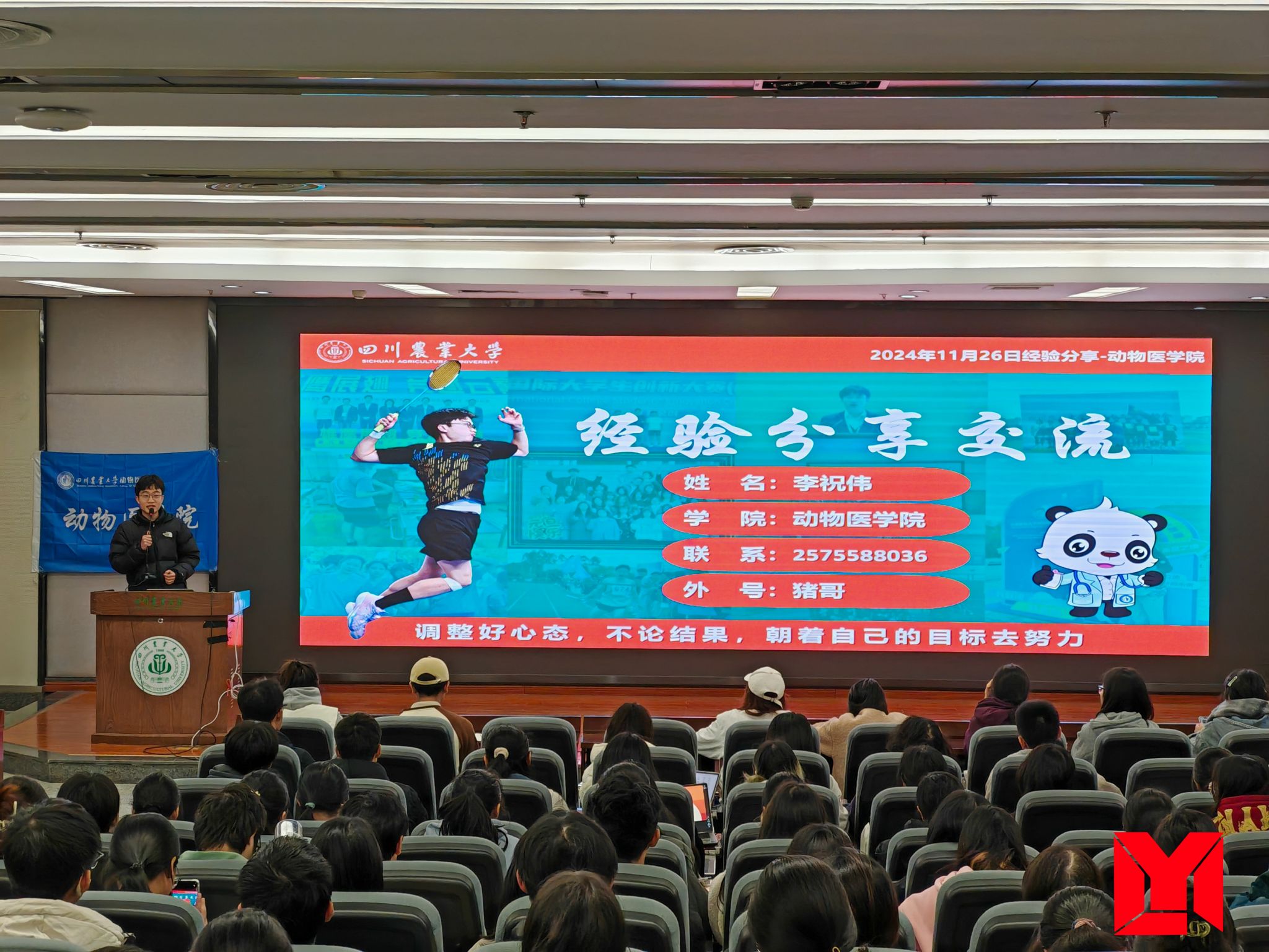 11月26日,由学生处牵头、德赢VWIN官方网站主办、院学生会学术学风部协办的“优秀学生标兵进学生社区”活动在图书馆报告厅举行,此次活动旨在进一步发挥优秀学生标兵的示范引领和辐射作用,完善学生社区德育活动体系,培养和选树参与学生社区治理、朋辈教育的学生典型。活动吸引了200余名动医学子参加,优秀学生标兵李祝伟同学进行了经验分享与互动交流。同时此活动也是学院“与优秀同行-优秀学生成才报告会”系列分享活动之一。