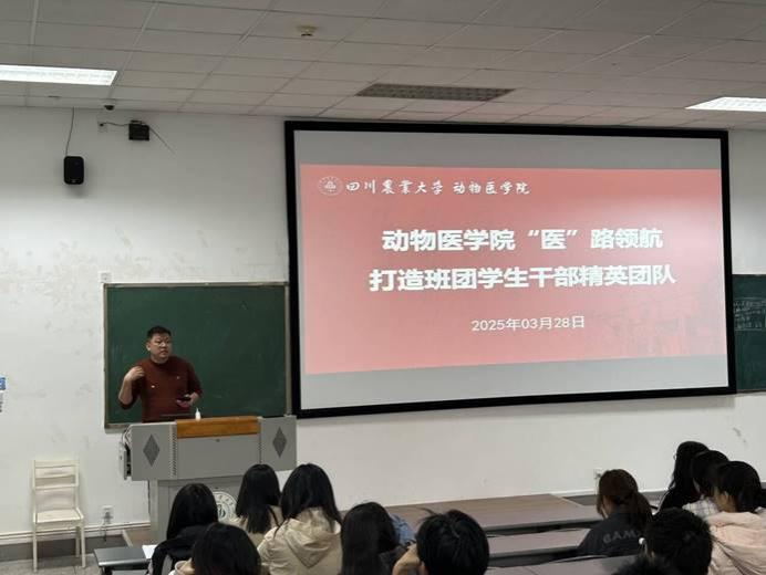 辅导员张淑英也对班委提出了殷切期望。她强调,班委作为班级的核心力量,要切实肩负起自身的责任,时刻以身作则,以良好的品格和积极的行为为同学们树立榜样。在学生管理方面,张淑英着重强调了请假制度的规范性,明确指出若有出校晚不归或离开成都的情况,学生务必提前向班主任及辅导员请假报备,确保学生安全管理到位。同时,班委要密切关注身边同学的心理状态,及时发现并给予帮助。在谈及近期学院活动安排时,她提到了周点名工作的重要性,要求班委务必认真落实,督促各小班同学按时签到。此外,她还介绍了星级班集体申报以及读书月活动相关情况,鼓励各小班积极参与,营造良好学风。班牌大赛与动医之星评选活动也即将启动,希望各班做好准备,展现班级风采与个人魅力。