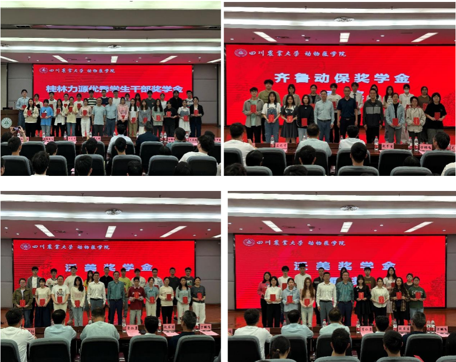 典礼伊始,左之才教宣读了奖学金表彰决定。本次颁奖典礼,对胡张甜甜等25名荣获“桂林力源优秀学生干部奖学金”、李玉潇等15名获得“齐鲁动保奖学金”、罗正中等34名摘得“沃美奖学金”、刘马峰等3名“张鸣谦奖”的师生,共计77人进行了隆重表彰,发放奖学金达21万元整。