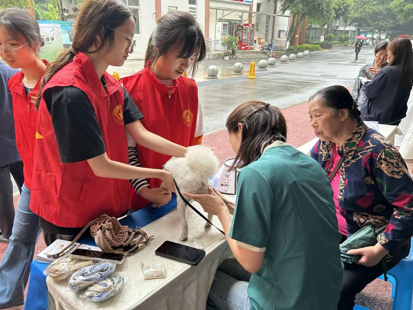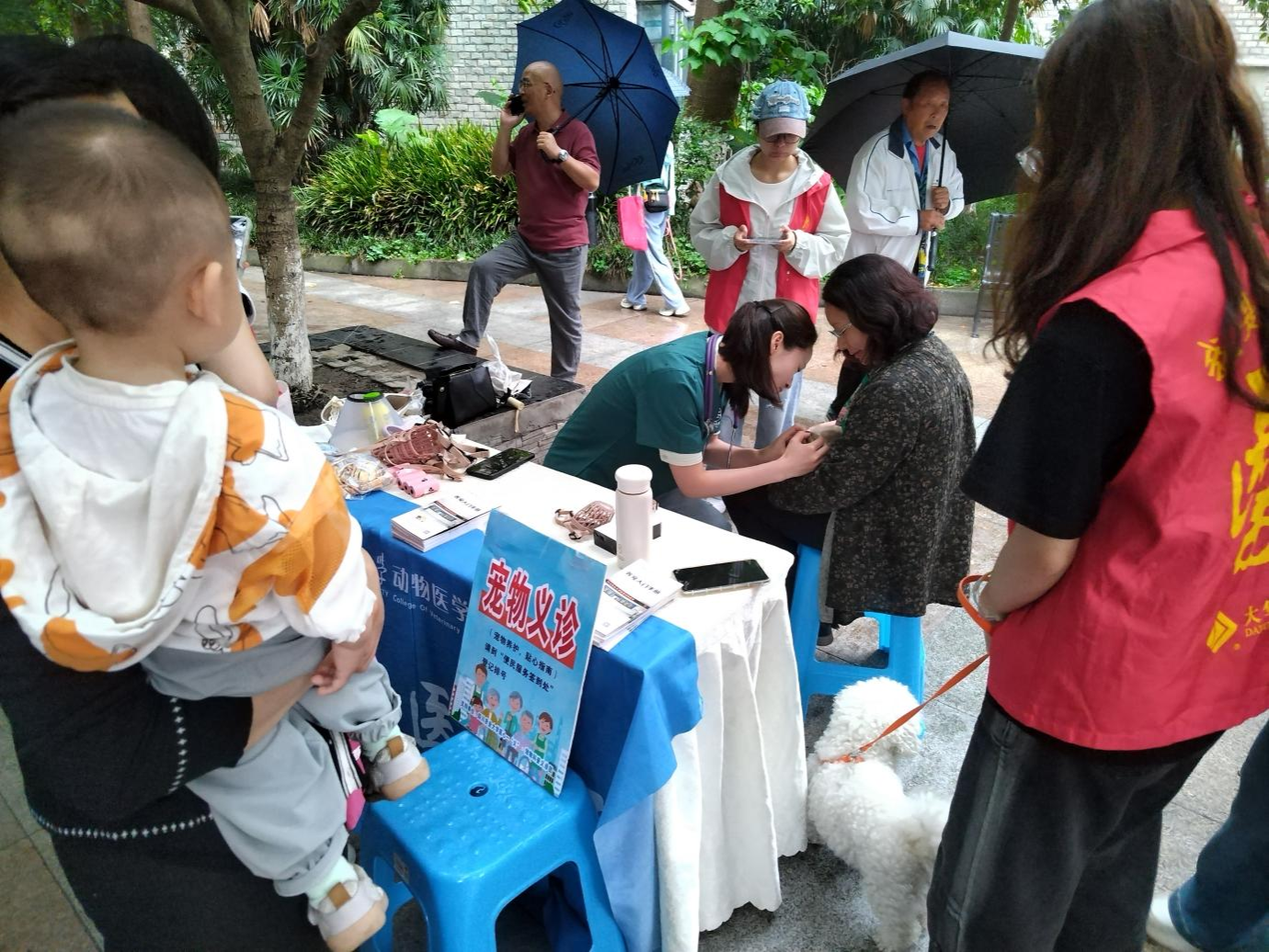5月30日,“宠物义诊活动”在四川省温江区南熏大道漫城顺利开展,来自德赢VWIN官方网站的五名志愿者与钟亚琳老师为社区宠物及宠物主人提供健康服务。此次活动聚焦于宠物健康检查与科学养宠知识普及,吸引了众多居民参与。