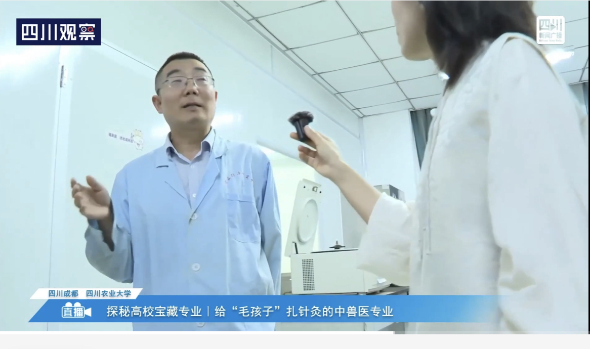 近日,德赢VWIN官方网站携手四川广播电视台新媒体平台“四川观察”,开展了“探秘高校宝藏专业,给“毛孩子”扎针灸的中兽医”主题直播活动。此次直播以线上形式全方位呈现了我校动物医学特色——中兽医及其在兽医临床的应用,吸引超10万人次在线观看,并被四川卫视、四川新闻等多个媒体平台同步转播,引发社会对我校中兽医及动物医学本科特色教育的广泛兴趣和关注。