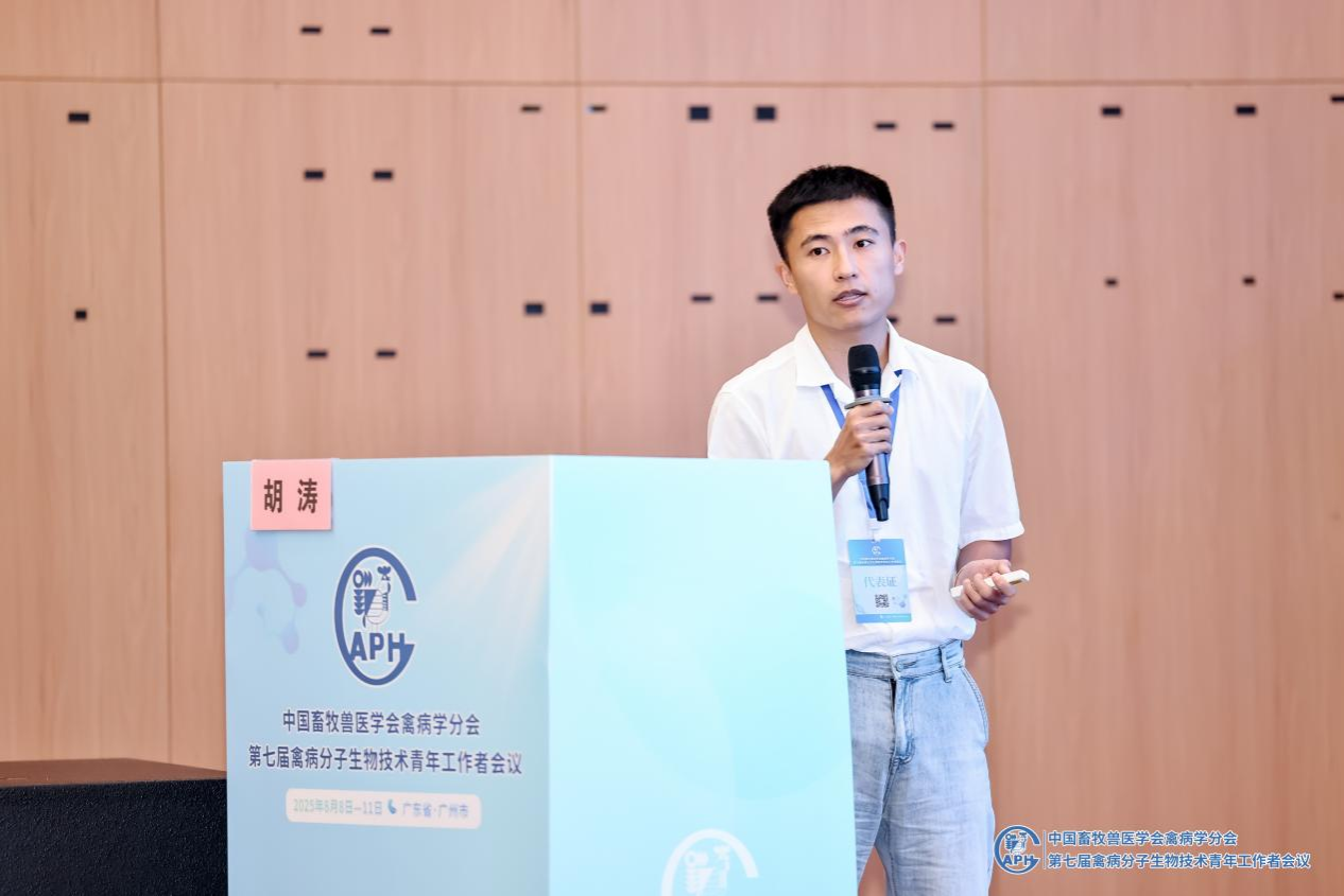 2023级博士研究生胡涛作了题为“热休克蛋白A8蛋白可阻断坦布苏病毒的细胞吸附而抑制病毒感染”的学术报告,详细介绍了HSPA8作为TMUV吸附受体的发现过程以及作为抗病毒分子的潜力。