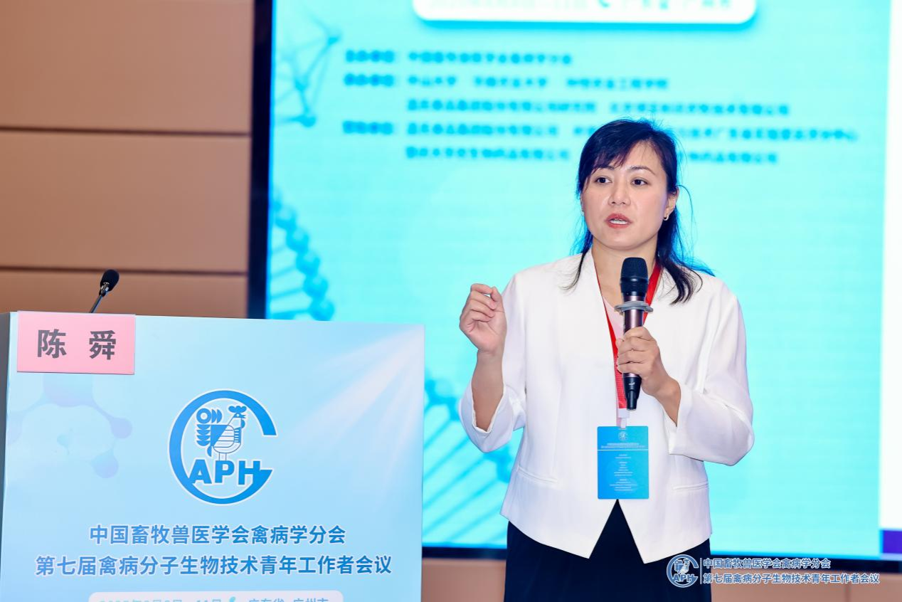 在大会报告环节,陈舜教授作了题为“鸭坦布苏病毒研究进展”的大会特邀报告,通过“TMUV基因组体外操作多反系统的创建及其应用”、“TMUV蚊感染模型构建及其媒介效能解析”、“TMUV 3’UTR调控鸭宿主适应性”、“新发现的TMUV非媒介经鸭粪口传播的特性”以及“自然突变增强TMUV毒力的机制”五个方面,系统展示了其团队在近些年对TMUV的重要研究发现,引起参会专家强烈地关注和激烈地讨论,并获得了参会专家的一致好评。
