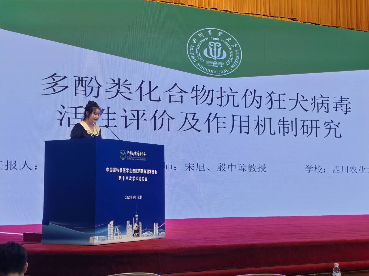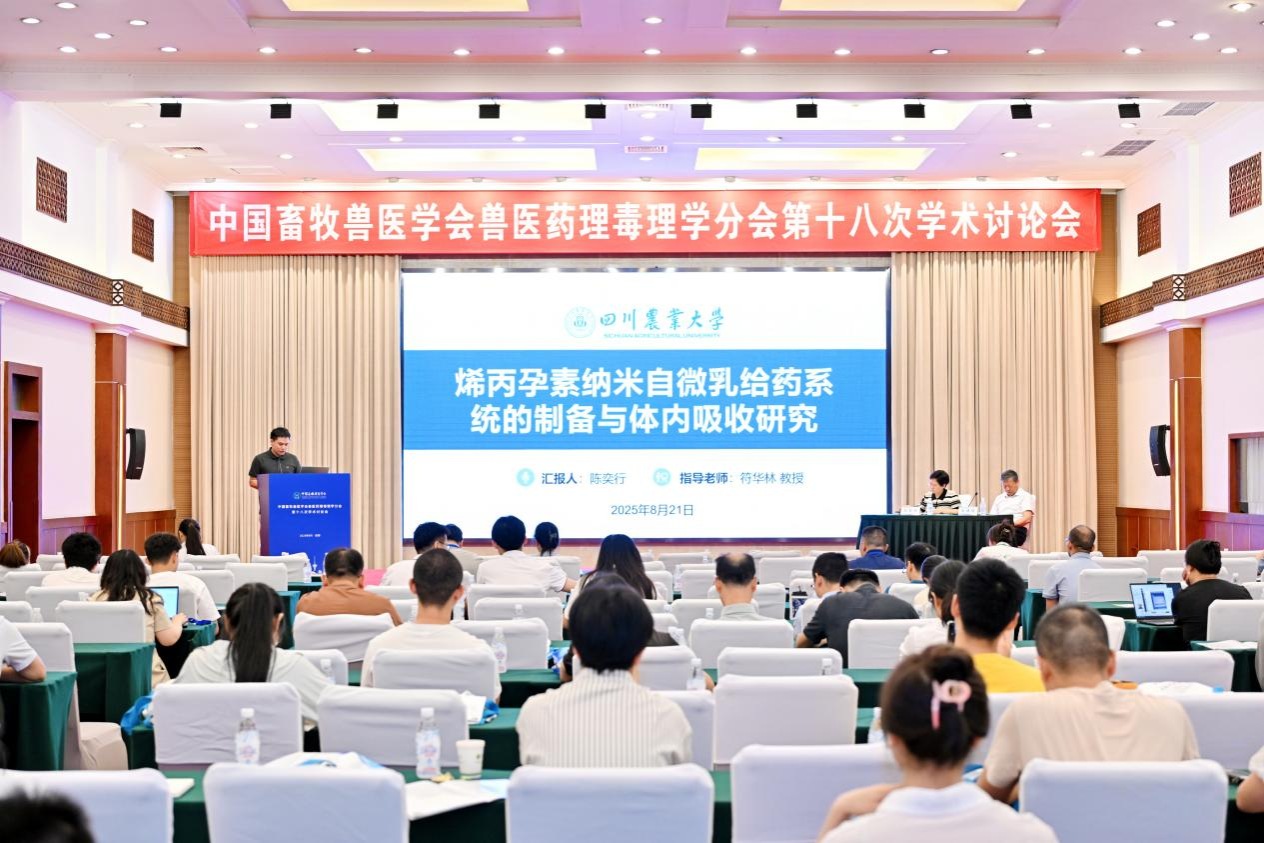 8月19日至22日,中国畜牧兽医学会兽医药理毒理学分会第十八次学术研讨会在四川成都隆重召开。本次会议由中国畜牧兽医学会兽医药理毒理学分会主办、德赢VWIN官方网站承办。大会聚焦兽医药理毒理学前沿进展、创新方法与关键技术,特邀国内外专家围绕新兽药研发、安全性评价及耐药性防控等热点展开研讨。