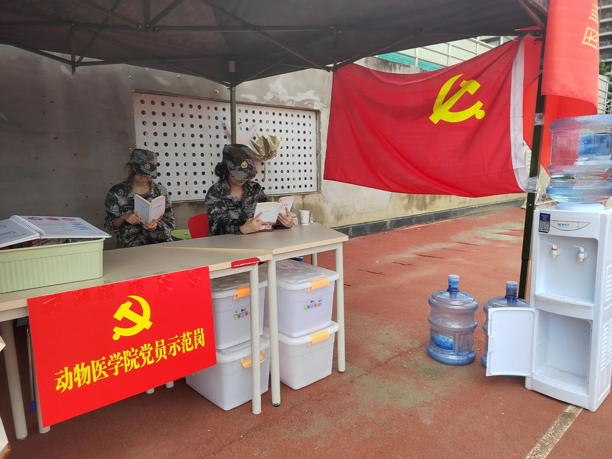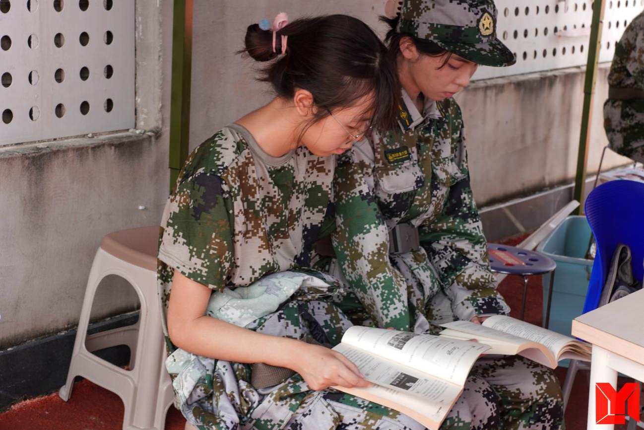 阅读角不仅为参训学生提供充足的饮用水与防暑物资,更陈列《习近平著作选读》《习近平与大学生朋友们》《丹心谱汗青:川农大的红色档案》等经典读物,将军训场转化为融国防训练与党的创新理论熏陶于一体的“实景课堂”。休息期间,许多2025级新生主动前来取阅书籍,在字里行间感悟思想伟力,从党的创新理论、红色故事中汲取奋进力量,实现军事训练与价值引领的同频共振。