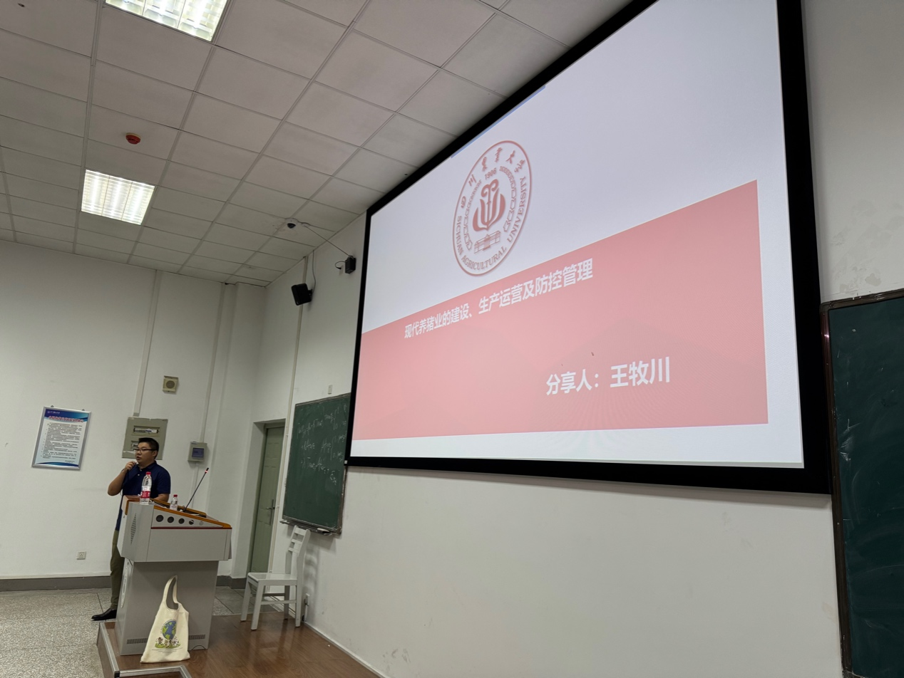 王沐川以“现代化猪场运营体系与健康管理”为主题,从现代牧场的广义定义切入,指出规模化猪场已成为猪肉供应链的核心环节。他结合成都正大的管理实践,系统介绍了从种猪繁育到肥猪出栏的全链条运营逻辑,并分享了猪群健康管理的实用技巧。针对职业发展,他鼓励同学们夯实专业基础,拓展智能养殖与数据分析等跨领域能力,为成为“技术+管理”复合型人才做好准备。