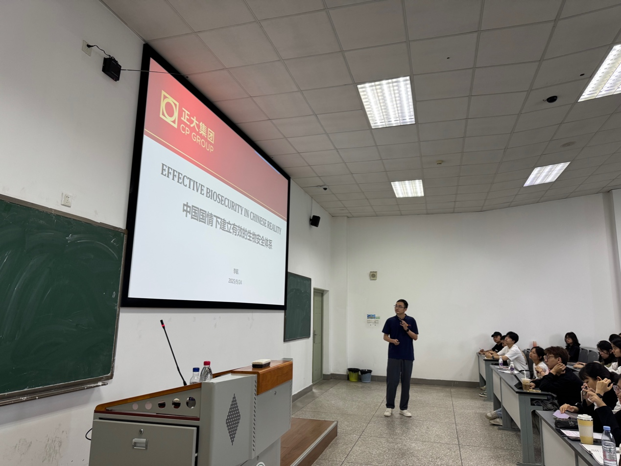 近日,为深化产教融合,践行协同育人,德赢官网优秀校友、成都正大集团兽医主管王沐川、李航应学院郎一飞副教授邀请,走进本科课程《现代牧场防疫管理》课堂,为150余名动医学子带来现代化猪场运营与生物安全防控专题讲授,生动展示了一线实战经验与行业前沿视角。