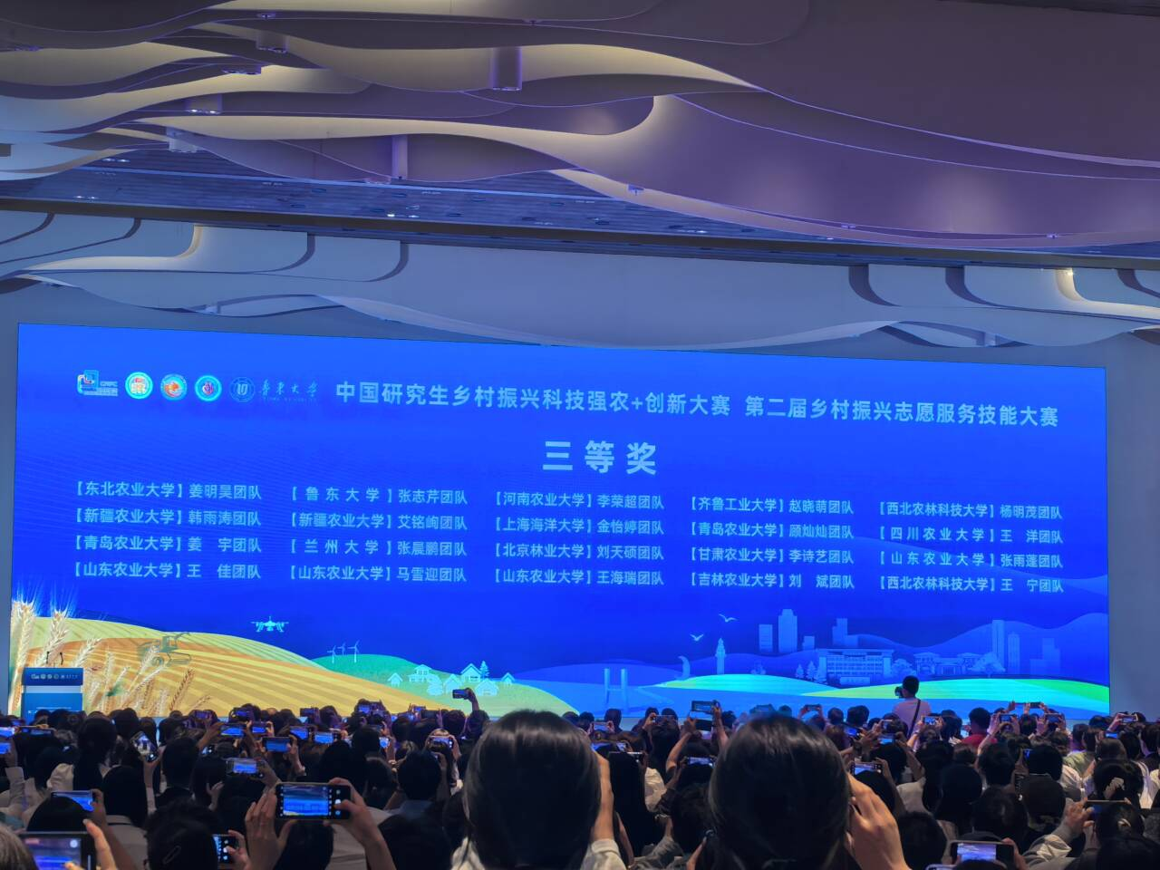 9月21日,由教育部学位管理与研究生教育司指导,中国学位与研究生教育学会、中国科协青少年科技中心共同主办的“中国研究生乡村振兴科技强农+创新大赛”第二届乡村振兴志愿服务技能大赛决赛在山东烟台圆满落幕。德赢官网研究生志愿服务团队凭借“乌骨鸡科技小院赋能乡村振兴”项目荣获全国三等奖,展现了动医学子扎根乡村、服务产业的实践能力与责任担当。