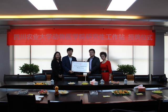 11月9日下午,德赢VWIN官方网站党总支书记付瑞琼、院长汪开毓教授、生物工程系潘康成教授等赴成都金之源生物技术有限公司举行了研究生工作站授牌仪式,并与公司领导进行了座谈。双方就前期的合作情况进行了总结,并针对企业生产中所面临的困难、新产品开发及其推广应用等问题进行了研讨和座谈。党总支书记付瑞琼、院长汪开毓教授代表学院向成都金之源生物技术有限公司进行了研究生工作站授牌。该研究生工作站的建设和运行,对于提高研究生实践教学质量和提升科研工作水平具有重要意义。