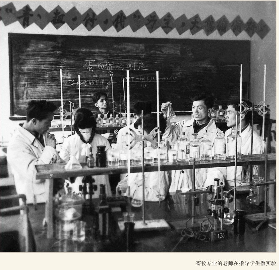 60年代,畜牧专业的宋育老师在指导越南留学生做实验