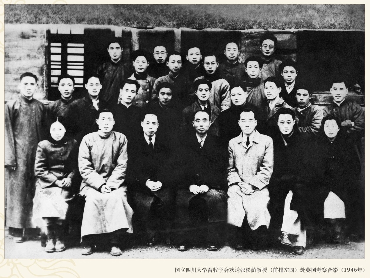 国立四川大学畜牧学会欢送张松荫教授(前排左四)(前排左三为邱祥聘教授)赴英国考察合影(1946年)