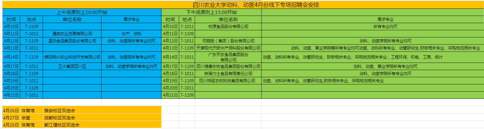 【实时更新】德赢VWIN官方网站动医4月份线下专场招聘会安排