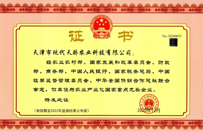 公司成立多年以来,先后获得多项荣誉,2016年获得了国家级高新技术企业认定,2020年获得了农业产业化国家重点龙头企业认定,2020年完成了信息化和工业化体系建设,全力打造智能AI工厂,坚定不移的走科技创新、联农带农、挂牌上市发展之路。