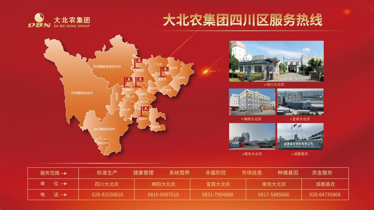 大北农集团四川区系大北农集团旗下的全资子公司,历经二十载砥砺前行,已成长为一家养猪综合服务企业。目前,四川区建有四川大北农、绵阳大北农、宜宾大北农、南充大北农、成都昌农五个现代化工厂,并构建了新生态平台、饲料制造平台、支撑平台三个核心平台,拥有一支300余人的专业队伍,具备年产高档猪饲料80余万吨的能力。同时,为养猪产业提供全方位专业支撑,涵盖健康管理、饲料营养、生产管理、品种改良、栏舍设计与工程设备、资金互助、数字管理以及农业信息。