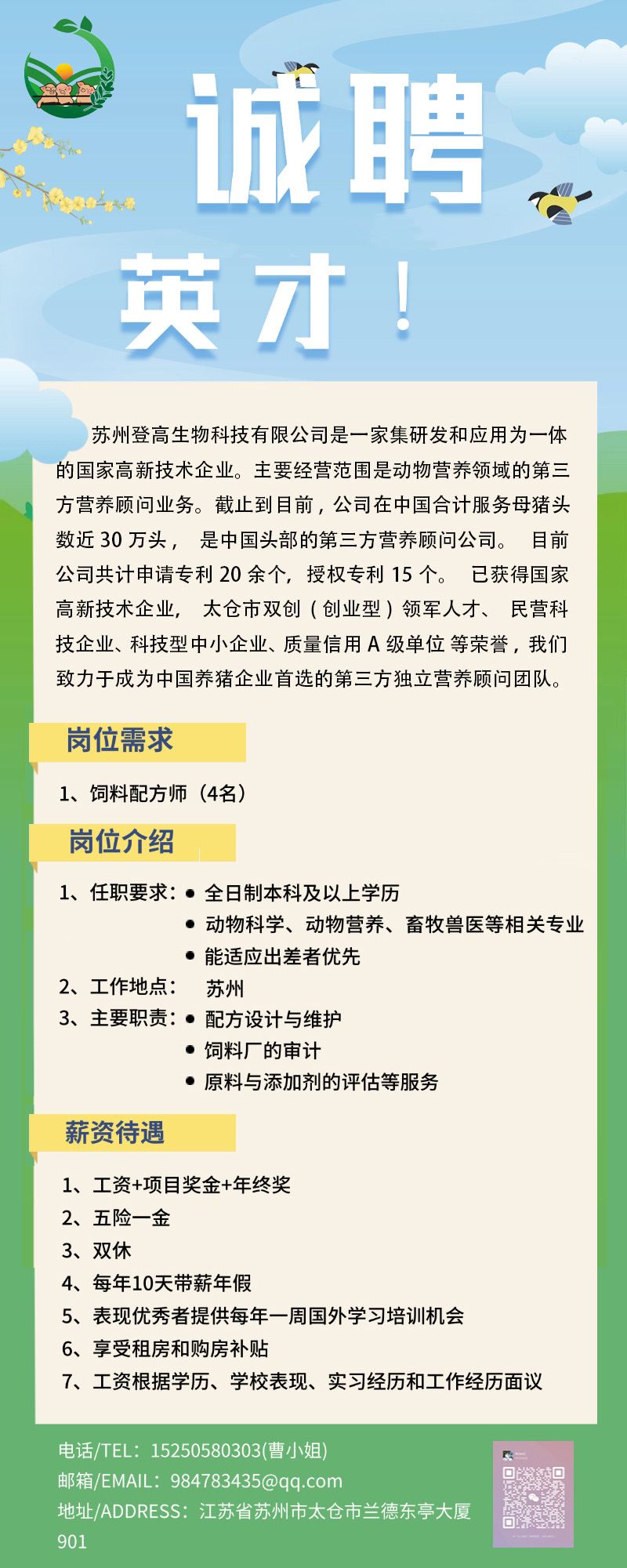 【3月27日专场双选会】苏州登高生物科技有限公司招聘简章