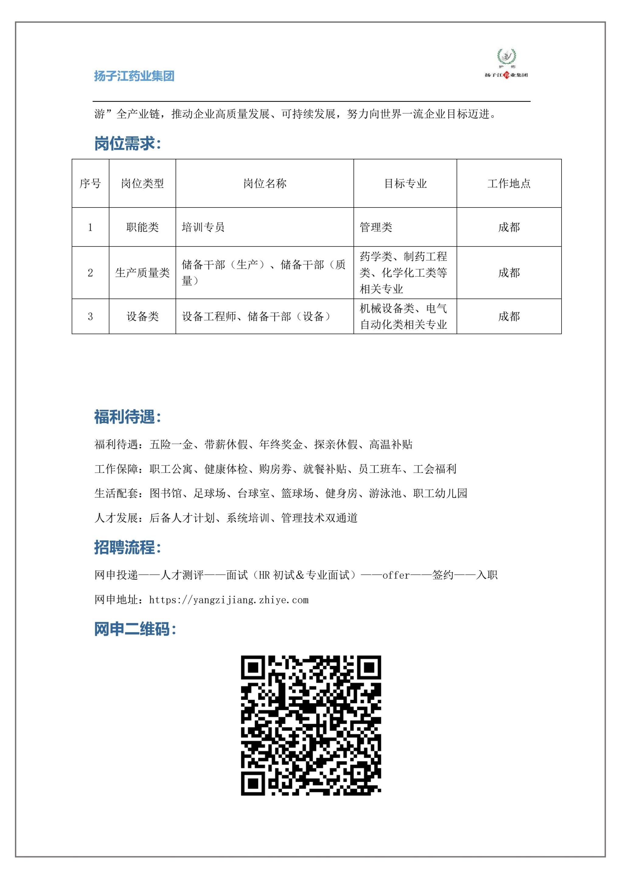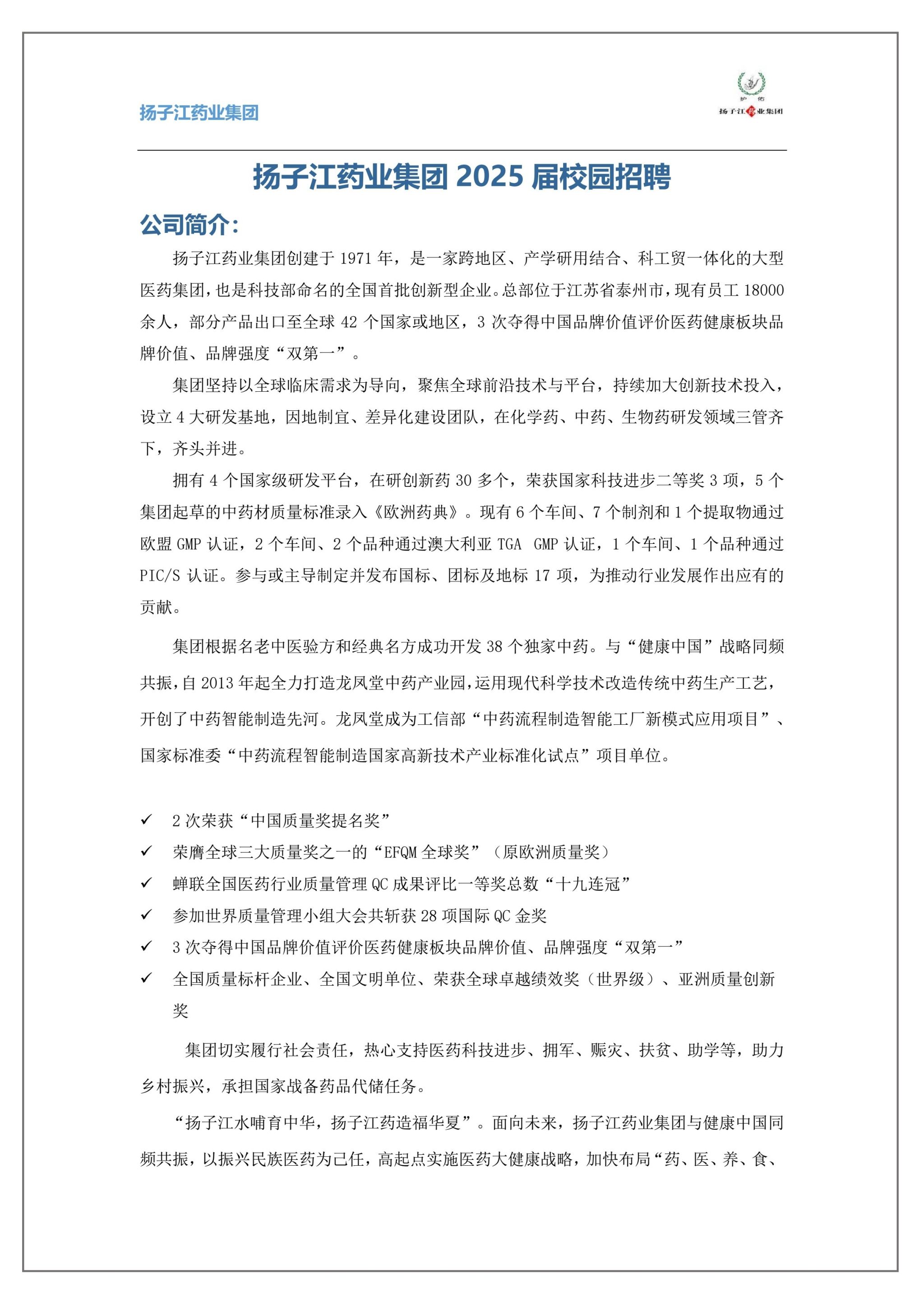 【3月27日专场双选会】扬子江药业集团2025届校园招聘
