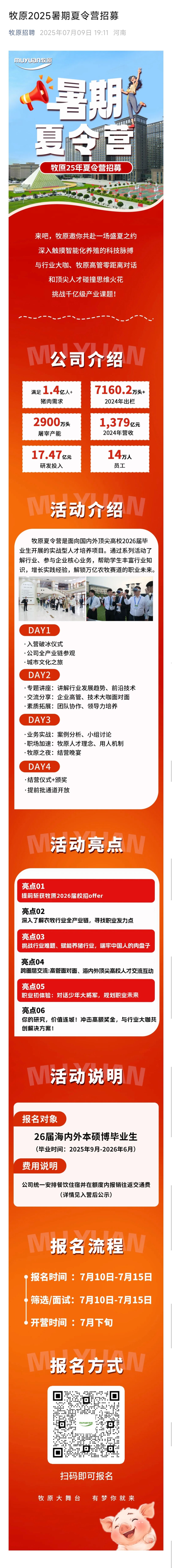 【2025年暑假动医梦工厂】牧原2025暑期夏令营招募