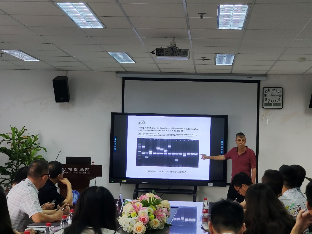 Paul Langford教授和Yanwen Li研究员在猪病研究中心进行了一系列的学术交流和合作活动。9月7日和9月8日的上午,Paul Langford教授在成都校区7-1109教室分别为我校师生作了题为《猪肺病原体诊断:从猪胸膜肺炎放线杆菌血清分型到猪呼吸道疾病综合征(PRDC)的农场诊断》(“Pig lung pathogen diagnostics: FromActinobacillus pleuropneumoniaeserotyping to on-farm diagnostics for the porcine respiratory disease complex (PRDC)”)和《“细菌疫苗:旧疫苗与新兴疫苗发现和平台技术概述”》(“Bacterial vaccines: an overview of old versus emerging vaccine discovery and platform technologies”)的两场精彩学术报告。报告由德赢VWIN官方网站黄小波教授主持,德赢VWIN官方网站100余名师生参加。