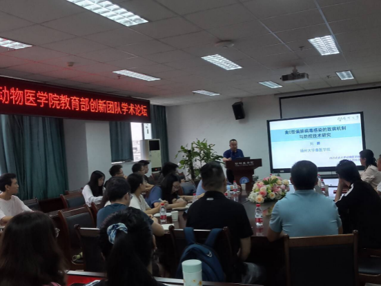 8月29日,德赢VWIN官方网站教育部创新团队教授学术论坛在成都校区7教1109会议室举行,学院邀请到扬州大学兽医学院刘爵教授为听众带来了一场题为“禽C型偏肺病毒感染的致病机制与防控技术研究”的精彩学术报告。本次报告由陈舜教授主持,德赢VWIN官方网站程安春教授、刘马峰教授、王一平教授以及禽病防治研究中心全体青年教师、学生共70余人参加。