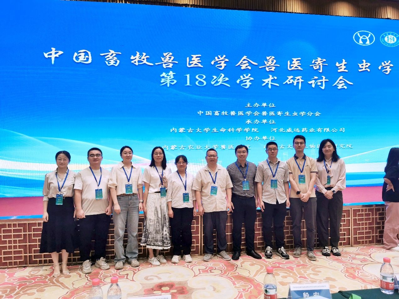 近日,由中国畜牧兽医学会兽医寄生虫学分会主办,内蒙古大学生命科学学院和河北威远药业有限责任公司共同承办,内蒙古农业大学兽医学院和内蒙古大学生物医学研究院协办的“中国畜牧兽医学会兽医寄生虫学分会第18次学术研讨会”在呼和浩特成功举办。动物寄生虫病研究中心杨光友教授、谢跃教授、古小彬副教授、王辉副教授、何冉老师、徐璟老师及博士研究生邵国庆参会。