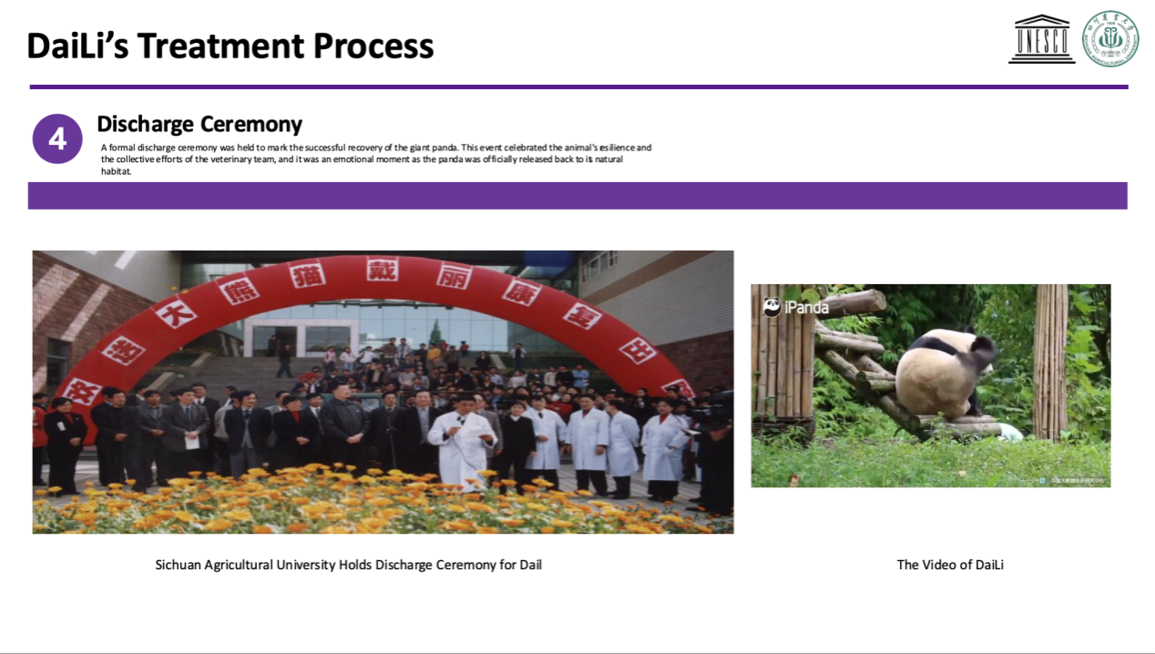 在讲座中,彭教授回顾了营救大熊猫“戴丽”这一中国野外大熊猫救护的典型案例。2001年2月26日,“戴丽”在野外获得救助之后,德赢VWIN官方网站迅速组织了以刘长松、杨光友、彭广能、邓俊良等为主的医疗团队对“戴丽”进行会诊。当时,其右耳被野兽咬去一半、伤口结痂,臀尾部、前臂背侧伤口出现了感染化脓,左后脚肿胀跗关节内侧也有化脓伤口,关节骨头外露,进食不佳……团队师生通过37天的精心护理,4月12日“戴丽”康复出院。目前,中国的野外大熊猫主要分布四川、陕西、甘肃三省。经中国科学家多年努力,大熊猫的野生种群数量已经有所回升,但依然面临着栖息地破碎、气候变化等多重威胁。彭广能强调,保护大熊猫的工作需要国际社会的共同努力,共同应对生态危机。