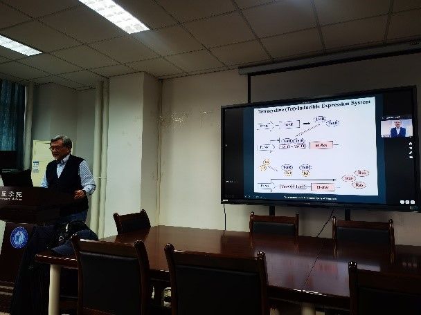 12月10-15日,国际交流合作处和德赢VWIN官方网站邀请美国田纳西大学终身教授Hwa Chain Robert Wang(中文名:王华骞)来校做学术交流。其间,王教授做了题为“A triple combination gemcitabine plus romidepsin+cisplatin to effectively control triple-negativebreastcancer tumor development,recurrence,and metastasis”(吉西他滨+罗美肽+顺铂三联疗法有效控制三阴性乳腺癌肿瘤发展、复发和转移)的学术讲座和“Research development & SCI manuscript preparation”(研究开展和SCI论文准备)的专业教学,线上线下听课人数近200人。